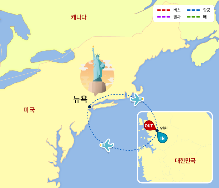 [일 정] 인천-뉴욕 ▣ [10:00] KE081편 인천국제공항 출발 [비행시간: 약 14시간 소요] ▣ [10:00] KE081편 뉴욕 JFK국제공항 도착